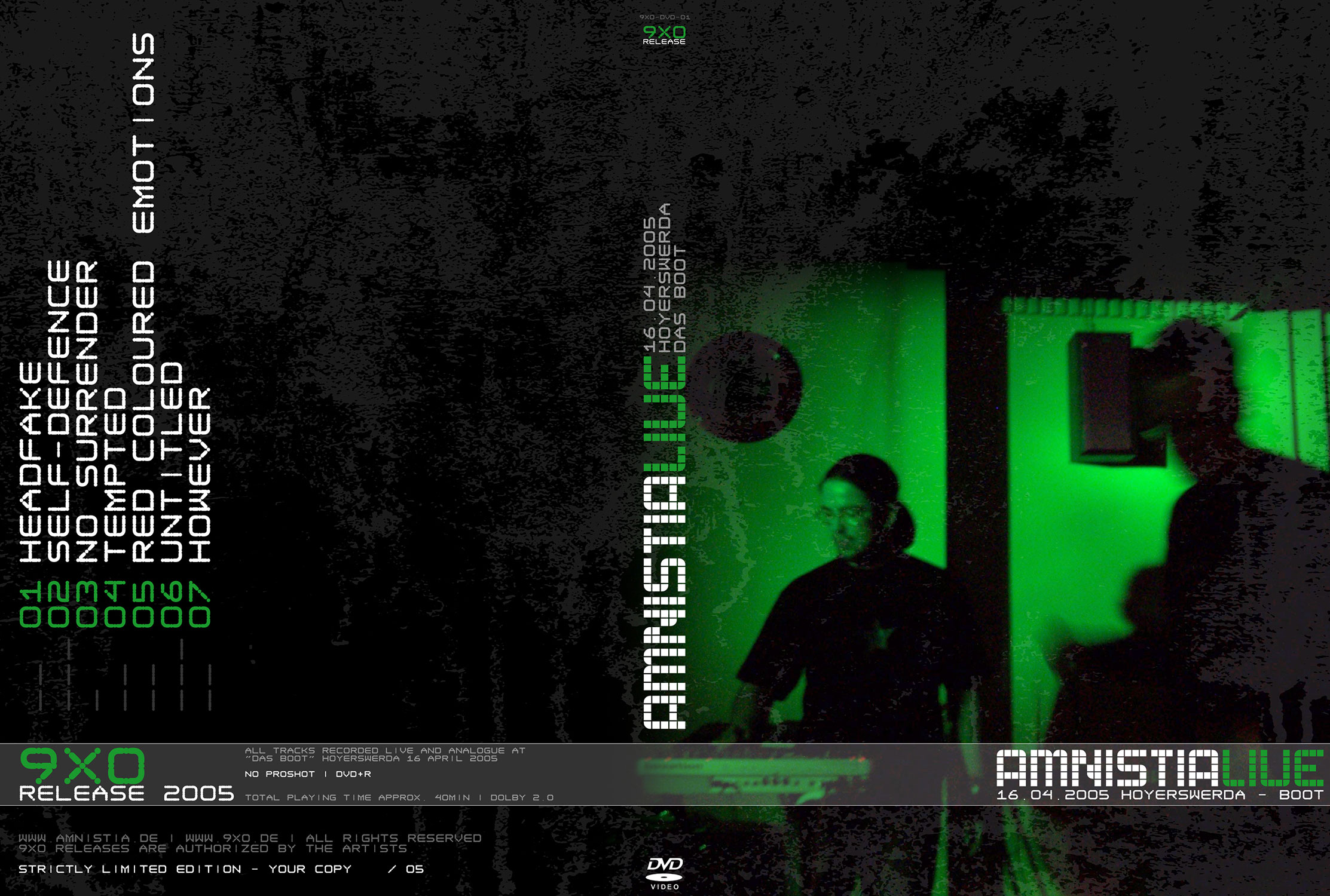 The first Amnistia concert was filmed with a camera of a friend. Poor audio, poor video footage of an soso show. The show is only one track, no navigation... We thought this had to be released ;)