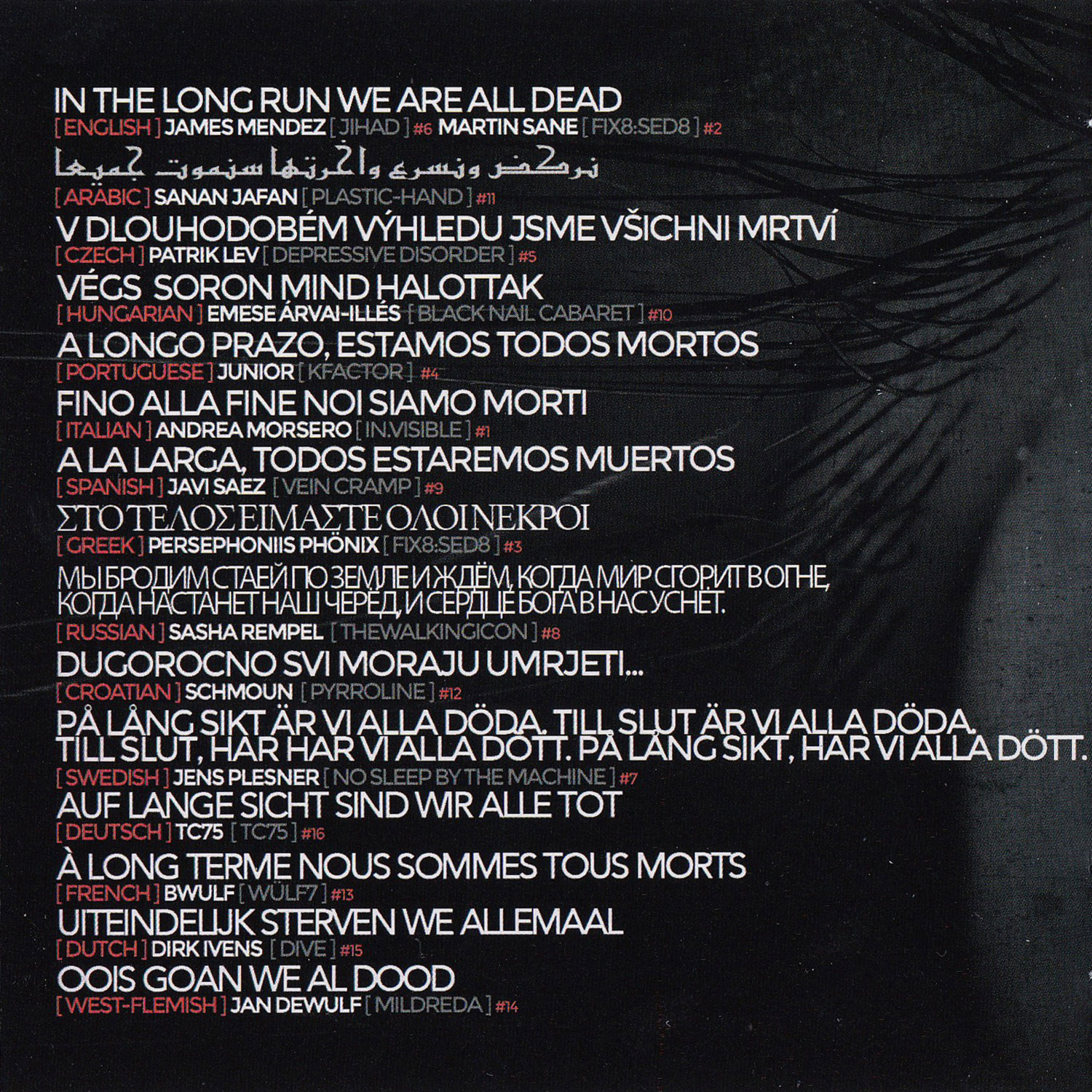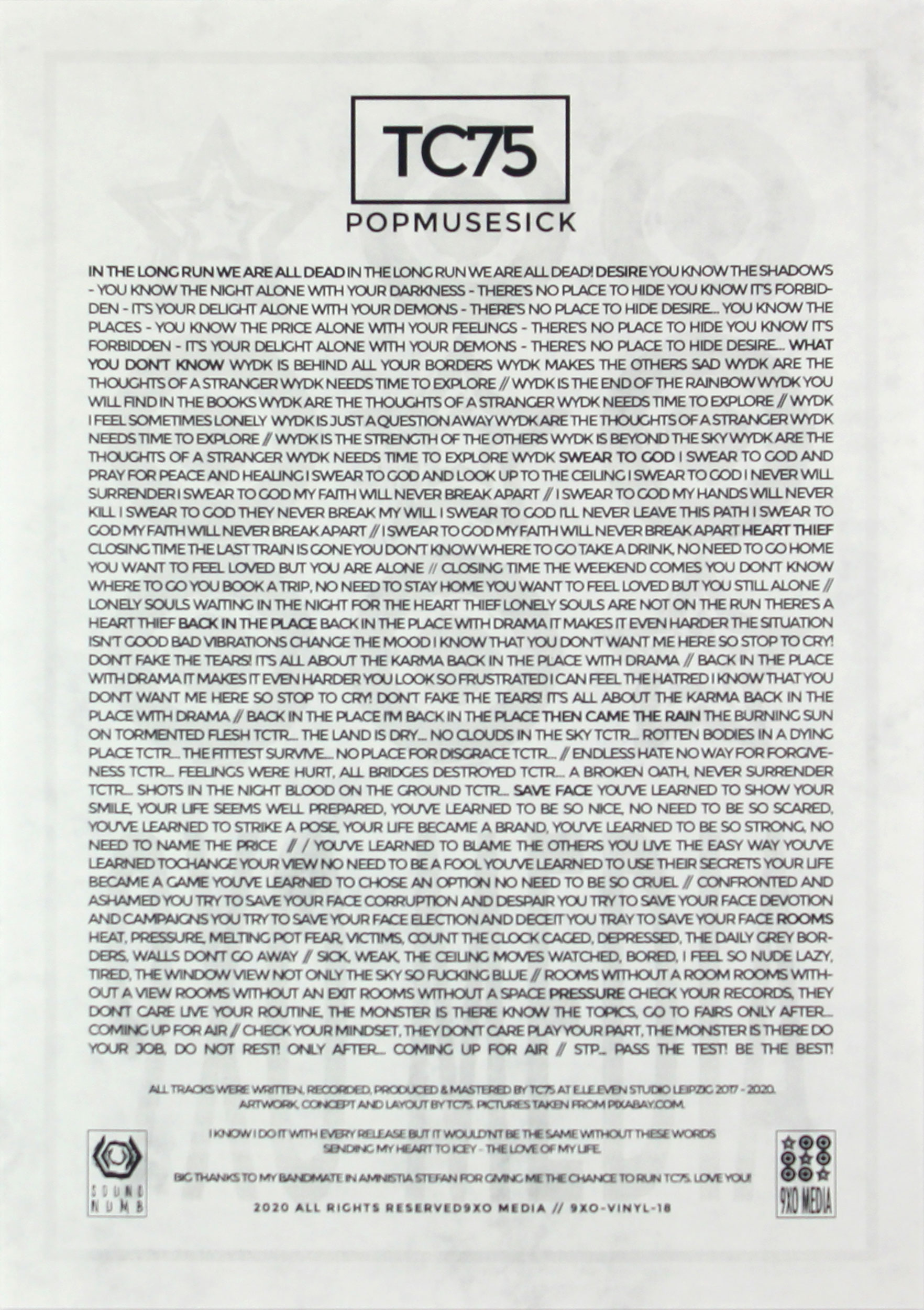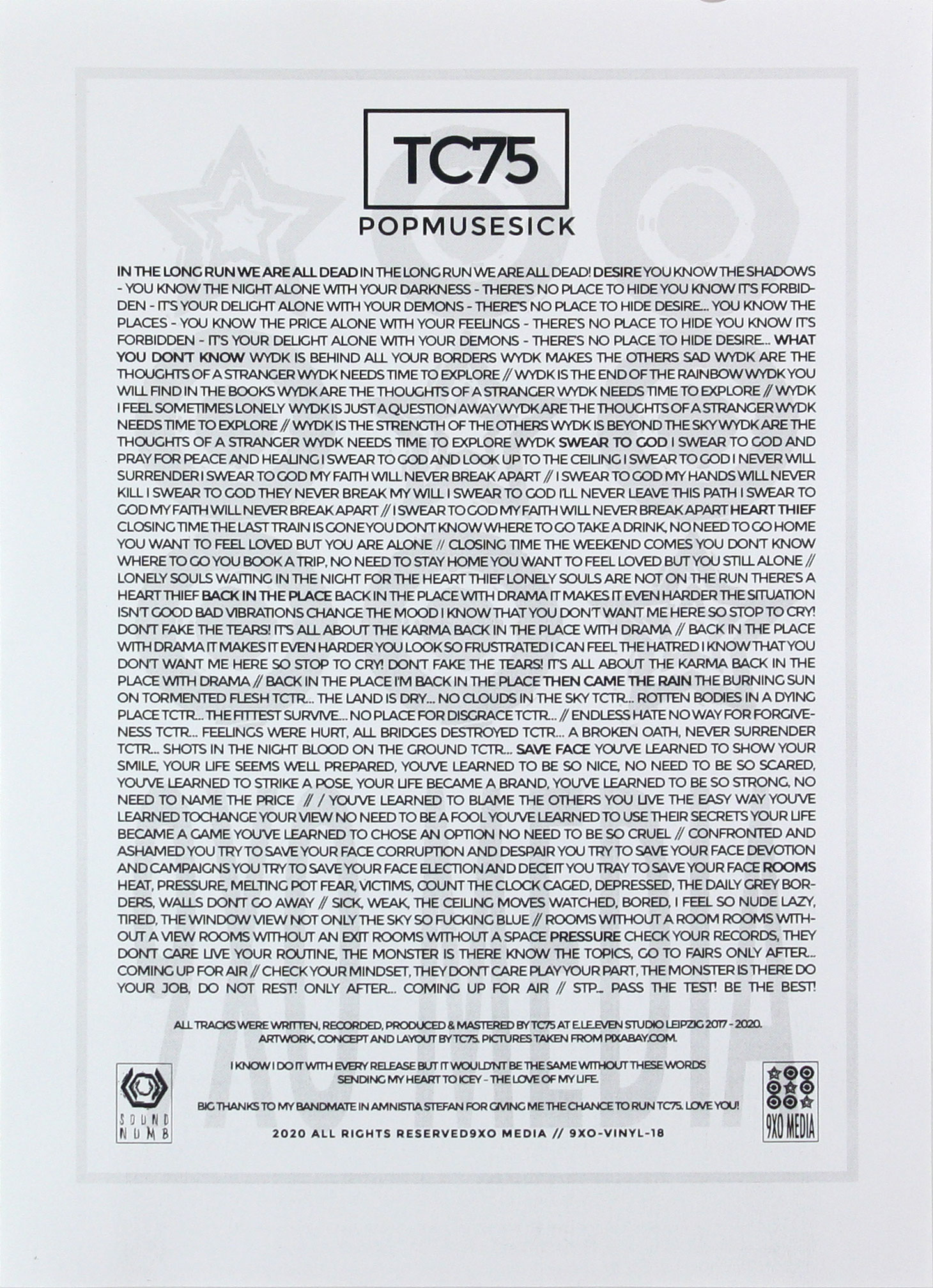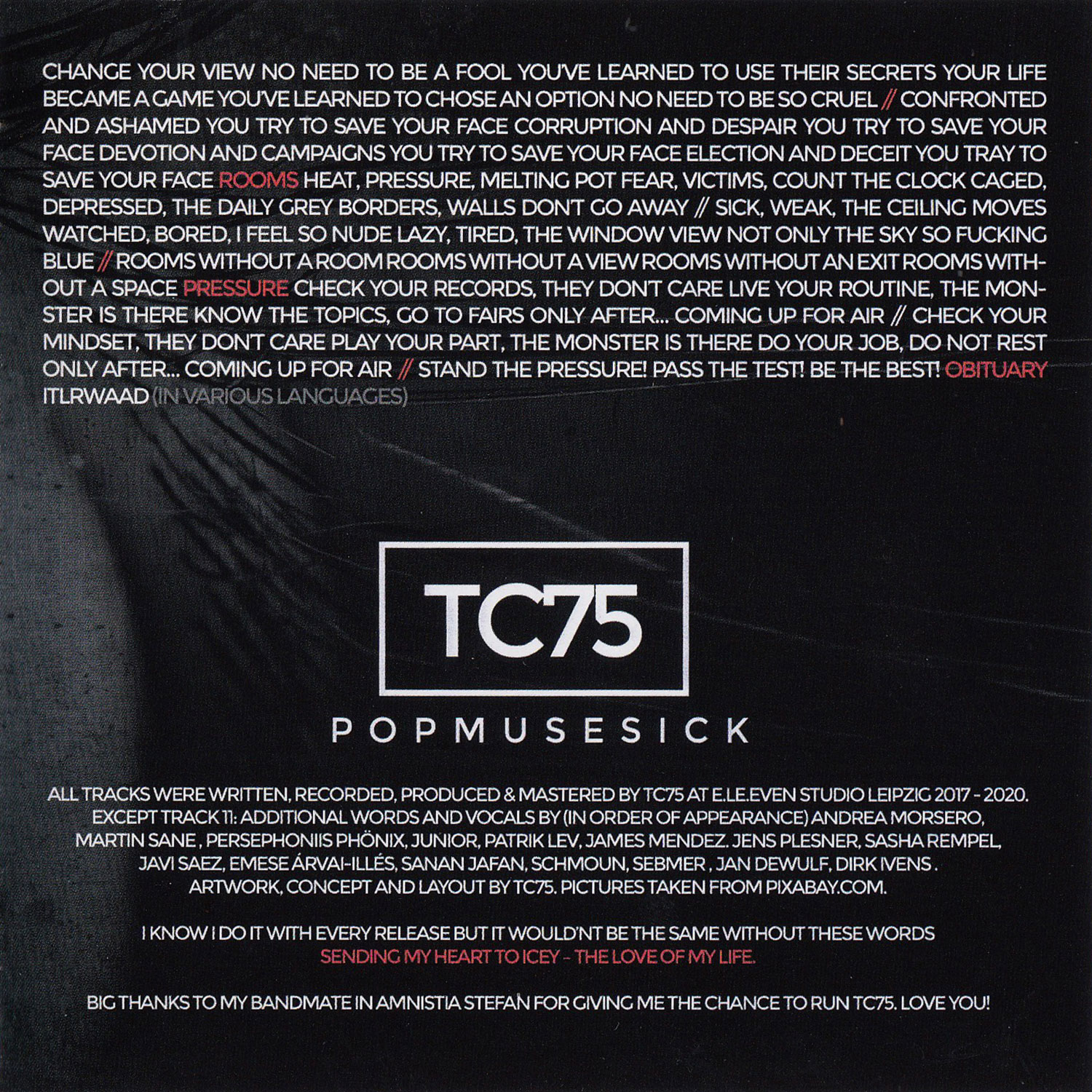 I made an edit of "Obituary" for the streaming plattforms. It contains only the vocal parts and the basic melodies. I removed the samples from the TV news for this version and shortened it to about 21 minutes.