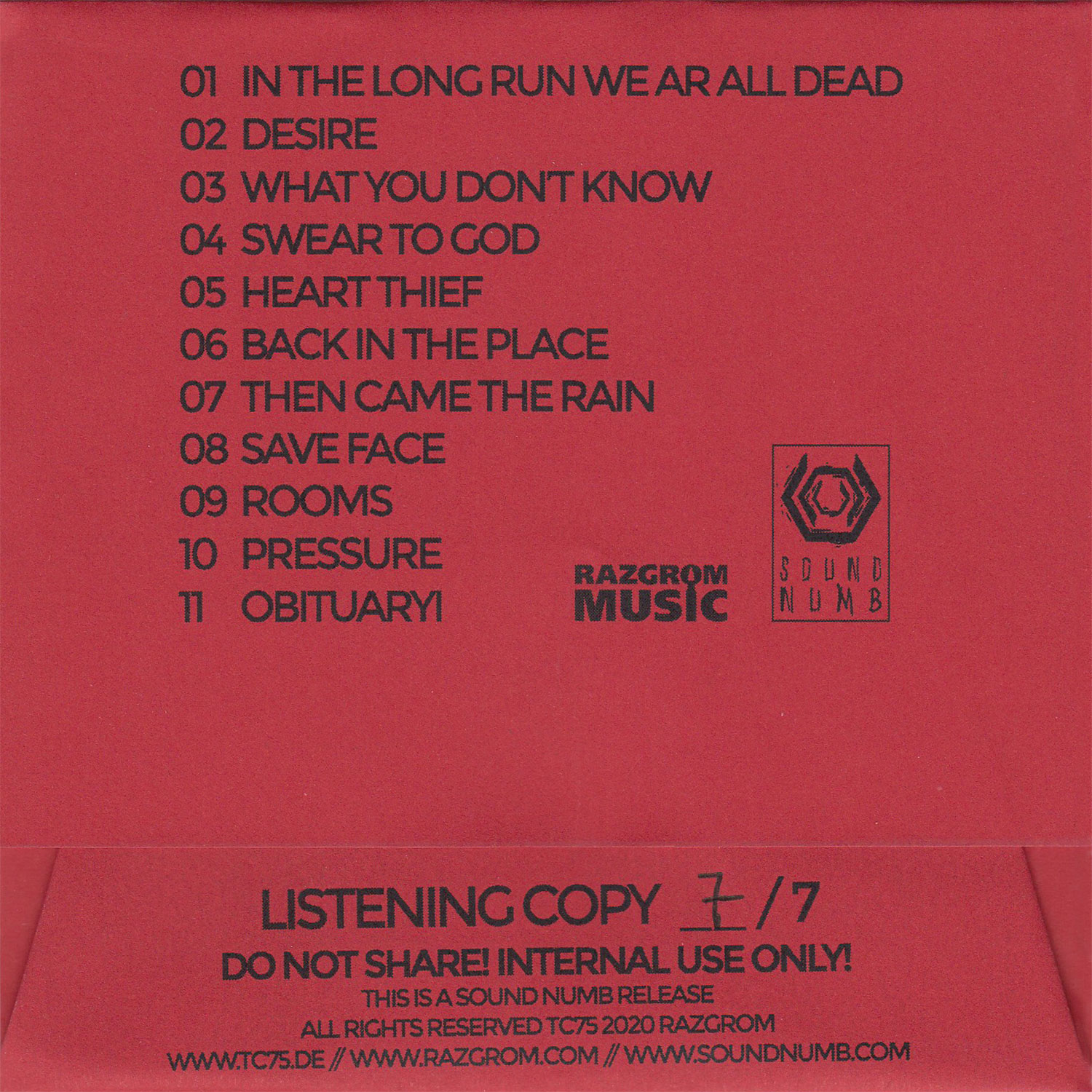 CDr, Listening Copy [ 7 copies ]