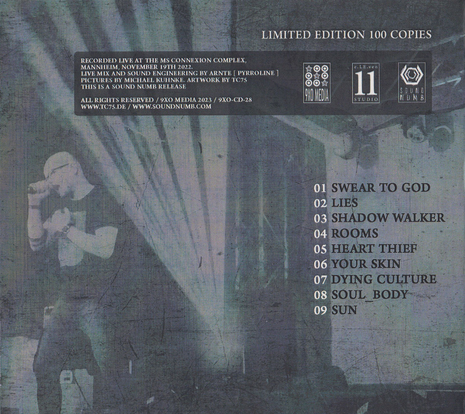 Tracks 01. Swear To God 3:42 02. Lies 3:10 03. Shadow Walker 2:53 04. Rooms 3:23 05. Heart Thief 3:09 06. Your Skin 3:18 07. Dying Culture 3:40 08. Soul_Body 3:07 09. Sun 4:19